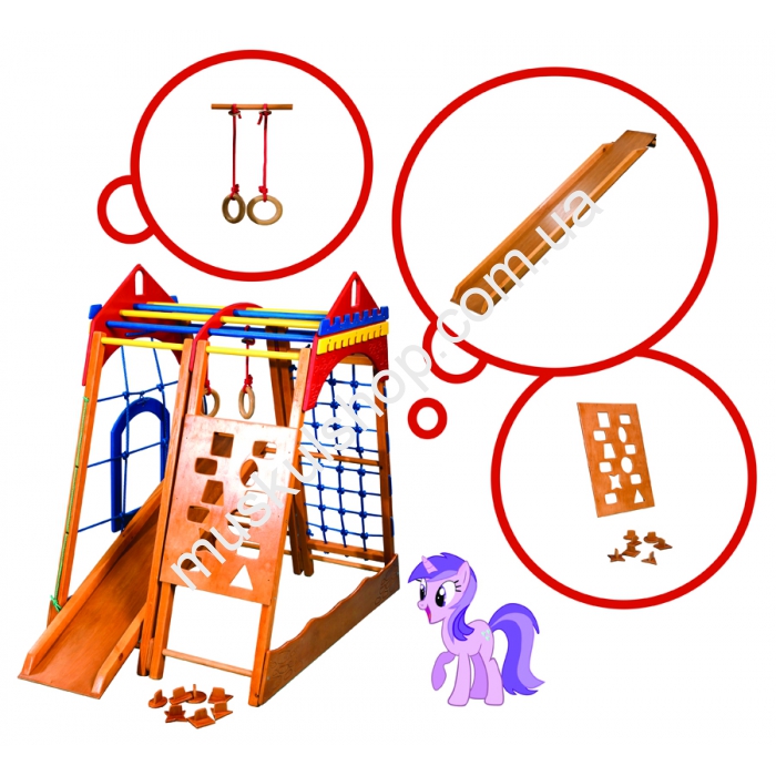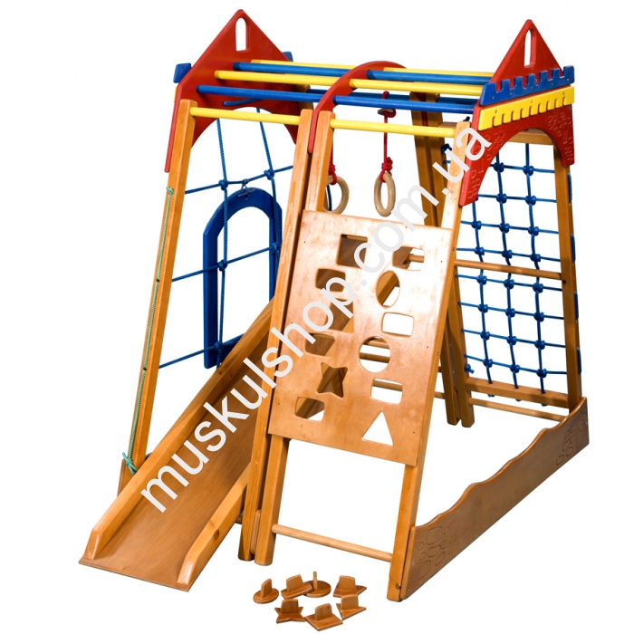 Детский спортивный уголок СпортБэйби Замок мини это идеальный комплекс, который одновременно совмещает в себе как небольшую игровую площадку, так и специальные образовательные дополнения. Сразу после установки он станет излюбленным местом, где ваш малыш сможет вдоволь поиграть, одновременно развиваясь умственно. Данный комплекс продуман до последней мелочи, даже расстояние между перекладинами просчитано до миллиметра. Данное приспособление было создано при учёте физиологических особенностей малышей и ориентируется оно на пользователей дошкольного периода.