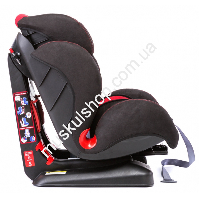 Ребенок фиксируется в кресле с помощью пятиточечного ремня.