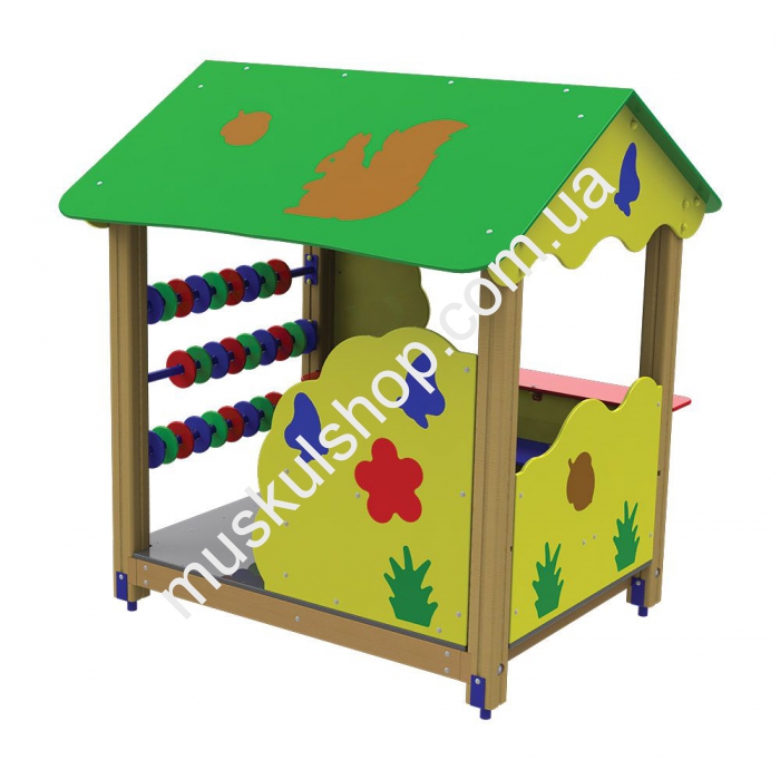 Беседка-домик Inter Atletika с нарисованной белочкой обладает весом 182 кг, выполнена с прочного, качественного и надежного дерева, представлена в разноцветных тонах. Модель не требует много места под свое расположение, абсолютно безопасная и безвредная, есть различные сертификаты качества и безопасности эксплуатации. Модель способна выдерживать нагрузку до 80-ти кг, устанавливается на дачах и загородных комплексах, базах отдыха и детских лагерях. Ширина 1,6 метра, а длина составляет 1,7 м, крыша двускатная, предусмотрено окошечко. Даже после нескольких годов интенсивной эксплуатации, беседка не поменяет свой первоначальный облик. Модель рассчитана на детишек от 3-х до 12-ти лет, а для прочной фиксации необходимо бетонирование основания.