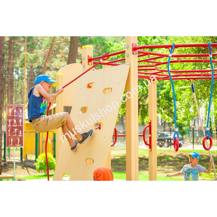 Гимнастический комплекс Атлет-1 Интер Атлетика S724 выполнен из прочного, деревянного бруса, его устанавливают на детских площадках, но и дачах, загородных комплексах, базах отдыха, школах и детских лагерях. Укомплектована модель рукоходом, гимнастическими кольцами, лестницей, перекладинами, двумя баскетбольным кольцом, доской для скалолазания и другими. Общая длина комплекса составляет 4,92 метров, а высота 2,81 метра. Уличный комплекс поможет обрести и поддерживать физическую форму накачать все группы мышцы тела, а также сыграть в активные виды спорта. Категорически запрещена эксплуатация в снег, дождь и сильный ветер, чтобы нивелировать возникновение травматизма. Рассчитана модель на детей в возрасте от 6 до 12 лет, модель поможет развить мышцы рук, ног, пресса и суставы, представлена в красном цвете, способная выдерживать нагрузку 80 кг на 1 пользователя. Модель абсолютно безопасная и безвредная, есть различные сертификаты качества и безопасности эксплуатации.