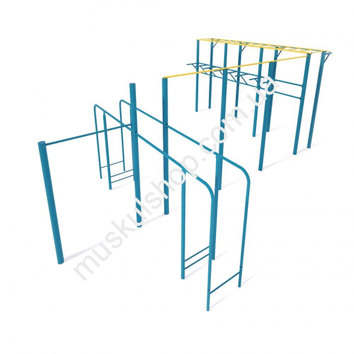 Гимнастический комплекс Интер Атлетика УТ118 оснащен рукоходом, брусьями для ходьбы, несколькими перекладинами и прочим. Представлена модель в желто-голубом цвете, выполнена с прочного стального сплава, общая длина составляет 7,89 м, а высота 2,54 метра. Запрещены занятия при снегопаде, дожде и сильном ветре, чтобы нивелировать возникновение травматизма. Комплекс выдерживает вес пользователя 100 кг, на данной модели можно выполнять различные физические упражнения, тренировать выносливость и силу духа. Установка комплекса не требует осуществления сварочных работ. Отличный комплекс для занятий на свежем воздухе, укрепления общего иммунитета не только ребенка и его здоровья, но и взрослого.
