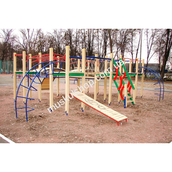Гимнастический комплекс Лабиринт Интер Атлетика S715 напоминает целый городок для активного вида спорта и занятий на природе. Рассчитана модель на детей в возрасте от 3-х до 12-ти лет, модель поможет развить мышцы рук, ног, пресса и суставы, представлена в красно-синем цвете, способная выдерживать нагрузку 80 кг на 1 пользователя. Общая длина комплекса составляет 8,50 метров, а высота 2,44 метра. Модель абсолютно безопасная и безвредная, есть различные сертификаты качества и безопасности эксплуатации. Уличный комплекс поможет обрести и поддерживать физическую форму накачать все группы мышцы тела, а также сыграть в активные виды спорта. Категорически запрещена эксплуатация в снег, дождь и сильный ветер, чтобы нивелировать возникновение травматизма. Выполнен комплекс из прочного, деревянного бруса, его устанавливают на детских площадках, но и дачах, загородных комплексах, базах отдыха, школах и детских лагерях. Он состоит из рукохода, лестниц, брусьев, доски для пресса.