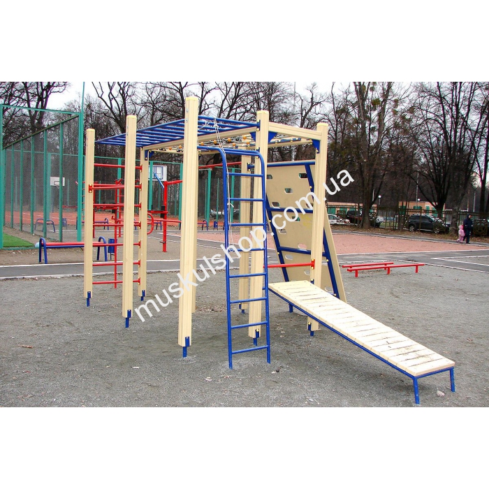 Гимнастический комплекс Рукоход Интер Атлетика S725 обладает длиной 6,55 м и высотой 2,59 метра. Изготовлен комплекс из прочного, деревянного бруса, его устанавливают на детских площадках, но и дачах, загородных комплексах, базах отдыха, школах и детских лагерях. Категорически запрещена эксплуатация в снег, дождь и сильный ветер, чтобы нивелировать возникновение травматизма. Рассчитана модель на детей в возрасте от 6 до 12 лет, модель поможет развить мышцы рук, ног, пресса и суставы, представлена в красном цвете, способная выдерживать нагрузку 80 кг на 1 пользователя. Оснащена модель несколькими рукоходами, прямой и угловой лестницей, брусьями, доской для скалолазания, трапом для пресса и прочим.