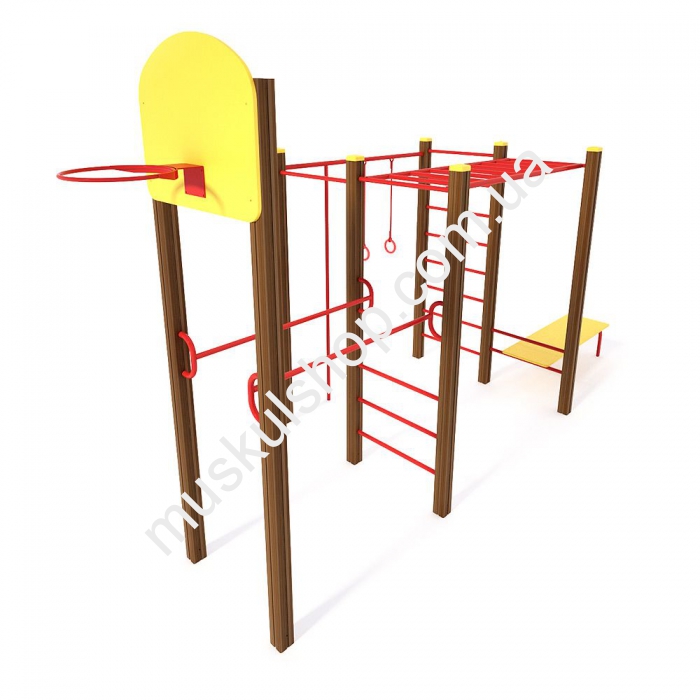 Гимнастический комплекс Спорт Интер Атлетика S727 оснащен рукоходом, лестницей для пресса, баскетбольным кольцом, перекладинами для подтягивания, брусьями, гимнастическими кольцами, прочным канатом и турниками. Изготовлен комплекс из прочного, деревянного бруса, его устанавливают на детских площадках, но и дачах, загородных комплексах, базах отдыха, школах и детских лагерях. Категорически запрещена эксплуатация в снег, дождь и сильный ветер, чтобы нивелировать возникновение травматизма. Рассчитана модель на детей в возрасте от 6 до 12 лет, представлена в красном цвете, способная выдерживать нагрузку 80 кг на 1 пользователя, обладает длиной 5,70 м и высотой 2,36 метра. Модель развивает у детишек выносливость, координацию движения, а также сделать прогулки на свежем воздухе полезными для здоровья.