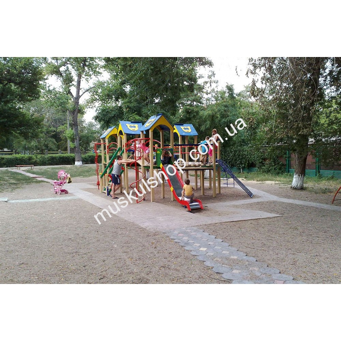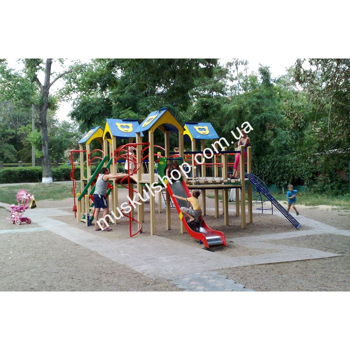 Игровой комплекс Цитадель Интер Атлетика T911 состоит из четырех, прочных платформ, которые соединены между собой трапами с поручнями, также он оснащен несколькими винтовыми лестницами, изогнутыми трапами, горкой для стремительного спуска, лестницей с поручнями. Модель развивает у детишек выносливость, координацию движения, а также сделать прогулки на свежем воздухе полезными для здоровья. Его устанавливают на детских площадках, на дачах, игровых площадках, базах отдыха и школах. Изготовлен комплекс из прочного, отборного и качественного сорта дерева, а выполнена в разноцветном оттенке, общая длина составляет 11,69 м, а высота 3,62 м, рассчитан на детишек от 7 до 12 лет, способен выдерживать нагрузку 80 кг на 1 пользователя. Категорически запрещена эксплуатация при снегопаде, дожде и сильном ветре, чтобы нивелировать возникновение травматизма, необходимо держаться в момент игры за поручни.