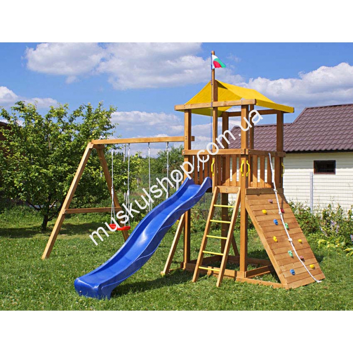Детский комплекс Sportbaby Babyland-4 украсит любой двор домов или собственного дома. Игровой комплекс комплектуется: горкой, качелями, песочницей, канатом и горка для начинающего скалолаза. Масса комплекса не превышает 200 кг, выполнен из прочной сосны, а перила изготовлены из настоящего бука, цвет комплекса натуральное дерево. Даже спустя пару лет частой эксплуатации, такой детский комплекс абсолютно не изменит первоначальный облик. Комплекс скрасит досуг ваших деток в саду или возле дома, наполнит их положительными эмоциями. Сосна способна выдерживать динамические физические нагрузки и при этом не менять физические свойства. Комплекс имеет различные сертификаты качества.
