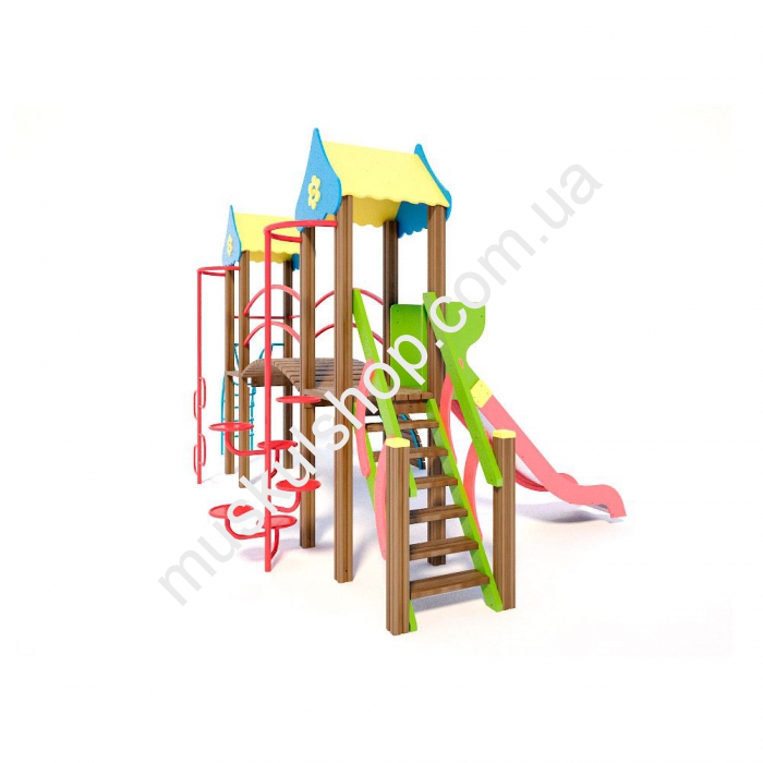 Игровой комплекс Гномик Интер Атлетика T802 оснащен двумя домиками, которые соединены между собой прочным мостиком. Категорически запрещена эксплуатация при снегопаде, дожде и сильном ветре, чтобы нивелировать возникновение травматизма. Развивает у детишек выносливость, координацию движения, а также сделать прогулки на свежем воздухе полезными для здоровья. Модель представлена в разноцветном оттенке, общая длина составляет 3,44 м, а высота 3,08 м, рассчитан на детишек от 3 до 6 лет, способен выдерживать нагрузку 80 кг на 1 пользователя. Модель устанавливают на детских площадках, на дачах, игровых площадках, базах отдыха и школах. Выполнен комплекс из прочного дерева, укомплектован горкой для крутого спуска, трапом для подъема, дуговой лестница, лестницей с гнутой трубы.