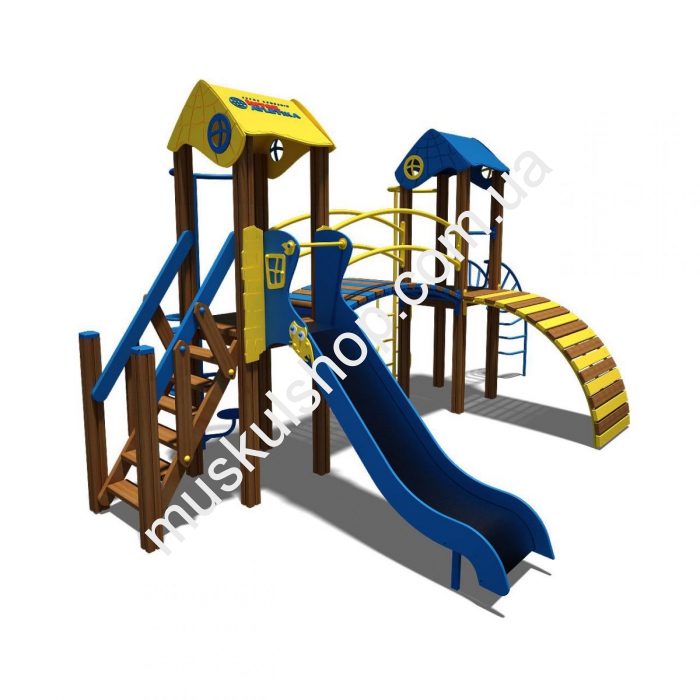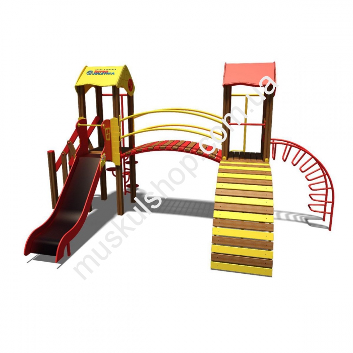 Игровой комплекс Гномик-NEW Интер Атлетика T802NEW представлен в форме двух домиков, соединенных между собой трапом с перилами. Комплекс оснащен горкой для крутого спуска, лестницей с перилами, несколькими гнутыми лестницами и винтовой лестницей. Безупречный комплекс для игр на свежем воздухе, укрепления общего иммунитета ребенка и его здоровья. Его устанавливают на детских площадках, на дачах, игровых площадках, базах отдыха и школах. Категорически запрещена игра при снегопаде, дожде и сильном ветре, чтобы нивелировать возникновение травматизма, необходимо держаться в момент игры за поручни. Выполнена модель из прочного, отборного и качественного сорта дерева, с применением пластика и прочной стали, общая длина составляет 3,44 м, а высота 3,08 м, рассчитан на детишек от 3 до 6 лет, способен выдержать нагрузку 80 кг на 1 посетителя. Выполнена модель в нескольких цветовых гаммах, желто-голубой, оранжево-зеленый, желто-красный.
