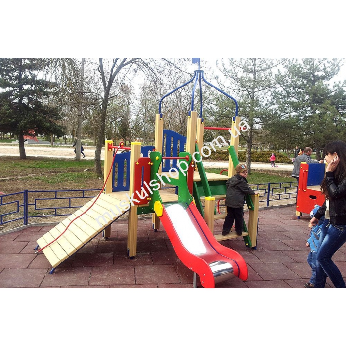 Игровой комплекс Кроха Интер Атлетика ТЕ810 оснащен домиком с крышей, лестницей для поднятия и спуска, трапом для бега, винтовой лестницей для упражнений. Категорически запрещена эксплуатация при снегопаде, дожде и сильном ветре, чтобы нивелировать возникновение травматизма, необходимо держаться в момент игры за поручни. Комплекс выполнен в разноцветном оттенке, общая длина составляет 3,36 м, а высота 3,01 м, рассчитан на детишек от 3 до 6 лет, способен выдерживать нагрузку 80 кг на 1 пользователя. Модель развивает у детишек выносливость, координацию движения, а также сделать прогулки на свежем воздухе полезными для здоровья. Модель устанавливают на детских площадках, на дачах, игровых площадках, базах отдыха и школах.