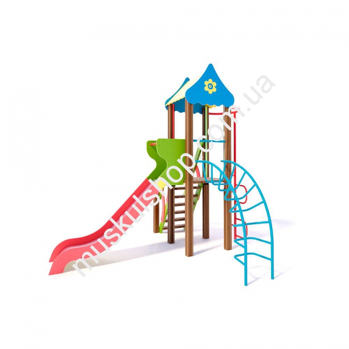 Игровой комплекс «Малыш» Интер Атлетика T801 выполнен с прочного дерева, оснащен всем необходимым для игр, предусмотрен три домик с крышей, горка для крутого спуска, трап для подъема, дуговая лестница, лестница с трубы гнутой. Категорически запрещена эксплуатация при снегопаде, дожде и сильном ветре, чтобы нивелировать возникновение травматизма. Развивает у детишек выносливость, координацию движения, а также сделать прогулки на свежем воздухе полезными для здоровья. Модель представлена в разноцветном оттенке, общая длина составляет 3,03 м, а высота 3,08 м, рассчитан на детишек от 3 до 6 лет, способен выдерживать нагрузку 80 кг на 1 пользователя. Модель устанавливают на детские площади, на дачах, игровых площадках, базах отдыха и школах.