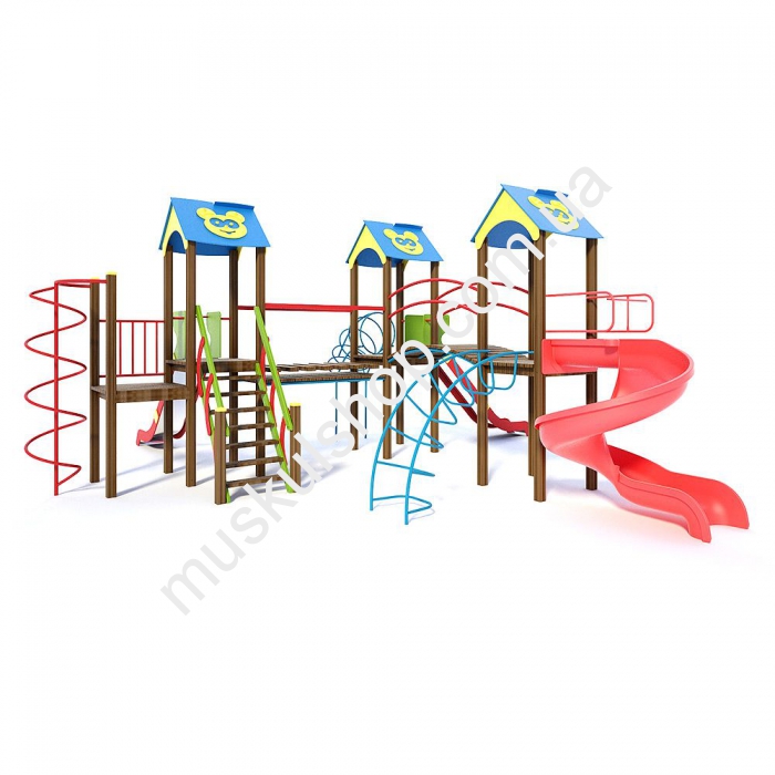 Игровой комплекс Панда Интер Атлетика T907 оснащен несколькими винтовыми лестницами, изогнутыми трапами, горкой для стремительного спуска, лестнице с поручнями, а между собой платформы соединены трапами с поручнями. Изготовлен комплекс из прочного, отборного и качественного сорта дерева, а выполнена в разноцветном оттенке, общая длина составляет 8,19 м, а высота 3,62 м, рассчитан на детишек от 7 до 12 лет, способен выдерживать нагрузку 80 кг на 1 пользователя. Категорически запрещена эксплуатация при снегопаде, дожде и сильном ветре, чтобы нивелировать возникновение травматизма, необходимо держаться в момент игры за поручни. Модель развивает у детишек выносливость, координацию движения, а также сделать прогулки на свежем воздухе полезными для здоровья. Его устанавливают на детских площадках, на дачах, игровых площадках, базах отдыха и школах.