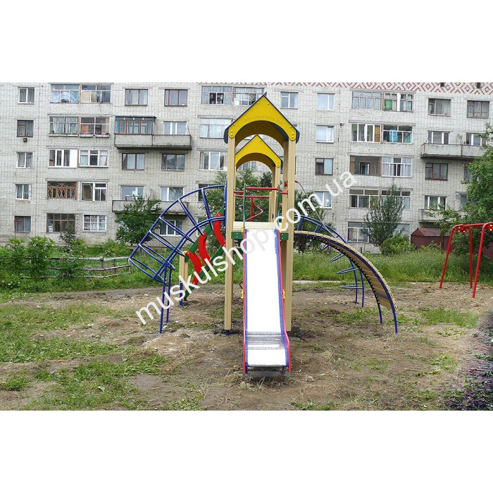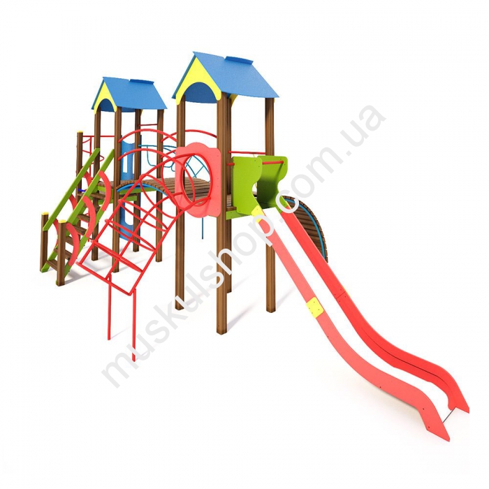 Игровой комплекс Теремок Интер Атлетика T902 установлен на нескольких платформах. Высота составляет 1,5 м от земли, между собой креплены трапами и мостиками. Его устанавливают на детских площадках, на дачах, игровых площадках, базах отдыха и школах. Изготовлена модель из прочного, отборного и качественного сорта дерева, а выполнена в разноцветном оттенке, общая длина составляет 7,99 м, а высота 3,62 м, рассчитан на детишек от 7 до 12 лет, способен выдерживать нагрузку 80 кг на 1 пользователя. Категорически запрещена эксплуатация при снегопаде, дожде и сильном ветре, чтобы нивелировать возникновение травматизма, необходимо держаться в момент игры за поручни. Модель развивает у детишек выносливость, координацию движения, а также сделать прогулки на свежем воздухе полезными для здоровья. Комплекс укомплектован трапом с поручнями, лестницей изогнутой формы, скоростной лестницей для спуска, а также дуговой лестницы, рассчитан на несколько детишек.