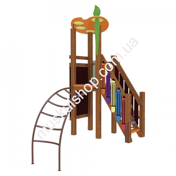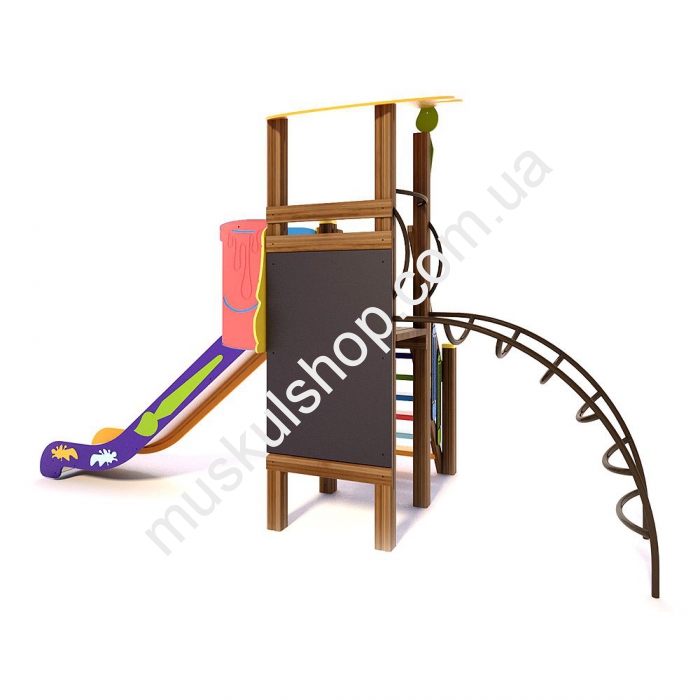 Игровой комплекс Веселый художник Интер Атлетика T817 напоминает доброго художника со шляпой на голове. Оснащен комплекс трапом с поручнями, лестницей изогнутой формы, а также скоростной лестницей для спуска, рассчитан на несколько детишек. Изготовлена модель из прочного, отборного и качественного сорта дерева, а выполнена в разноцветном оттенке, общая длина составляет 1,80 м, а высота 3,00 м, рассчитан на детишек от 3 до 6 лет, способен выдерживать нагрузку 80 кг на 1 пользователя. Категорически запрещена эксплуатация при снегопаде, дожде и сильном ветре, чтобы нивелировать возникновение травматизма, необходимо держаться в момент игры за поручни. Модель развивает у детишек выносливость, координацию движения, а также сделать прогулки на свежем воздухе полезными для здоровья. Его устанавливают на детских площадках, на дачах, игровых площадках, базах отдыха и школах.
