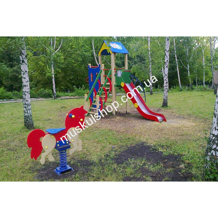 Качалка Inter Atletika в форме сказочного персонажа «Пони» понравится не только девочкам, но и мальчишкам. Длина модели 1,3 м, запрещена эксплуатации в снегопад, гололед, дождь, во избежание травматизма. Общий вес составляет 32 кг, способна модель выдерживать нагрузку до 80 кг. Качалка не потребуется много места под свое расположение, абсолютно безопасная и безвредная, есть различные сертификаты. Модель изготовлена с прочного, качественного и надежного металла и дерева, представлена в красочном цвете. Даже после нескольких годов интенсивной эксплуатации, такая качалка не поменяет свой первоначальный облик. Процесс установки происходит путем бетонирования основания. Качалка в форме мотоцикла понравится мальчишкам от 3-х до 6 лет. Устанавливается модель в помещениях, дачах и загородных комплексах, детских площадках, лагерях и базах отдыха, легко транспортируется.