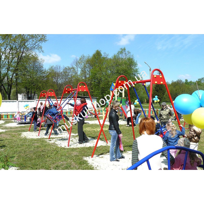 Качели Inter Atletika изготовлены с прочного, качественного и надежного металла и деревянного сиденья, представлены в красном цвете, рассчитаны на детишек от 6-ти до 12 лет. После нескольких годов интенсивной эксплуатации, такие качели не поменяет свой первоначальный облик. Не рекомендована эксплуатация в снегопад, гололед, дождь, во избежание травматизма. Качалка не нуждается в большом количестве места под свое расположение, абсолютно безопасная и безвредная, есть различные сертификаты. Процесс установки происходит путем бетонирования основания либо прикручивания болтами. Часто можно встретить на дачах и загородных комплексах, детских площадках, лагерях и базах отдыха, легко транспортируется, обладает весом 88,5 кг, выдерживает нагрузку до 80-ти кг, модель одинарного типа.
