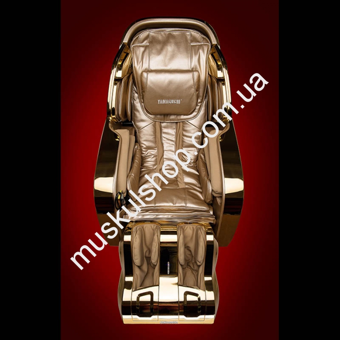 Yamaguchi YA-6000 Axiom Gold выполнен из драгоценных камней, общей стоимостью в 23 карата, камнями покрыты: пульт, боковые части кресла, а золотом наивысшей пробы: подлокотники, подставки для ног, подголовники и в целом корпус кресла. Массажное кресло управляется благодаря планшету либо смартфону. Кроме этого кресло оснащено 6 различными автоматическими программами, также есть возможность запомнить еще 3 индивидуальные. Аппарат способен выдержат пользователя с весом 120 кг. Для наслаждения массажем, стоит выбрать желаемый вид массажа, включить Мр3 плеер и наслаждаться отдыхом. Кресло способно прогреть спину инфракрасными лучами.