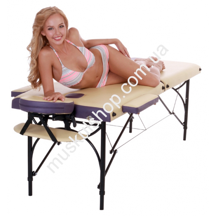US Medica Master укомплектован: вырезом для лица, заглушкой к нему, сумкой для транспортировки, оснащен также съемными подголовниками, подлокотниками и ремнем для фиксации рук в момент интенсивного массажа. Стол способен выдержать нагрузку свыше 250 кг, двухсекционный, изготовлен из буковой основы из стальными ножками, просто идеально впишется в интерьер косметического салона или домашней комнаты. Легкий, вес не более 22 кг, слаживается взмахом руки и переносится в чемодане. Покрытие стола сделано с прочного и качественного кожезаменителя, Широко применяют при различных видах Спа-процедур. Данный стол впечатляет своей простотой, уникальностью дизайна и многофункциональностью.