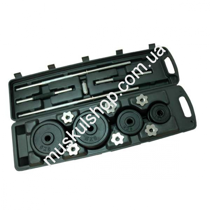 FitLogic BDB 50 – это набор для домашнего использования: штанга, две гантели и набор весовых дисков.