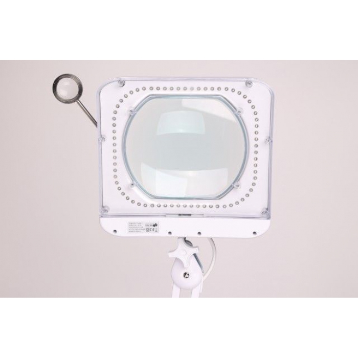 Настольная лампа-лупа Asf комплектуется сразу несколькими линзами на 3 и 12 диоптрий, представлена модель в белом цвете, линзы изготовлена с прочного стела размерами 18х15 см. Потребляет прибор 6 Вт, кроме этого комплектуется множествами светодиодными лампочками для подсвечивания и прогревания проблемных участков кожи. Аппарат позволит исследовать все участки кожи, осмотреть поры кожи клиента салона, небольшие за размером морщины, а также микротрещины кожи. Лупа помогает получить необходимый степень увеличения, а также необходимый уровень освещения для проведения определенного вида косметологических процедур. В комплекте предусмотрена крышка для защиты линзы от царапин и пыли, ручка на верху лампы для удобства вращения и переноски. Модель подойдет под любой интерьер косметологического кабинета.