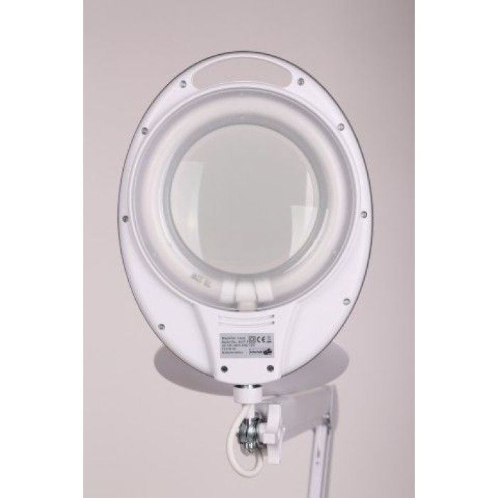 Настольная лампа-лупа Asf комплектуется ручкой для транспортировки, крышкой для защиты линзы от царапин и пыли. Линза изготовлена из стекла, ее диаметр составляет 12,5 см, способна увеличить до 3 диоптрии, представлена в белом цвете, впишется в любой интерьер косметологического кабинета. Лампа подобного типа позволит подробно осмотреть поры кожи клиента салона, небольшие за размером морщины, а также микротрещины кожи. Данная модель жизненно важна при проведении диагностики и выбора способа эффективного лечения определенного заболевания. Лампа-лупа поможет получить необходимый степень увеличения, а также необходимый уровень освещения для проведения определенного вида косметологических процедур, потребляемая мощность всего 22 Вт.