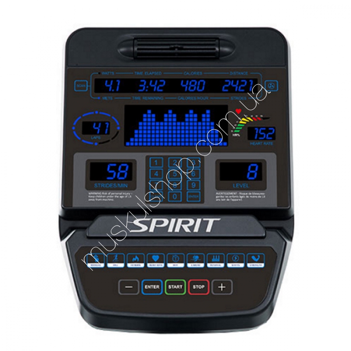 Орбитрек Spirit CE900 реализован на основе перенеприводной конструкции, электромагнитная система нагрузки которой контролируется электронным типом регулирования. Орбитрек оборудован маховиком весом в четырнадцать килограмм для обеспечения тихой работы оборудования. При наличии маневровых роликов и компенсаторов неровной поверхности пола данный тренажер полностью подготовлен для беспрепятственного использования в быту. Орбитрек Спирит СЕ900 способен похвастаться такими конструктивными особенностями и удобствами, как держатель для бутылки и замечательные педали с нескользящей поверхностью. Бортовой компьютер с широким функционалом и читабельным дисплеем, отражает важнейшие параметры, визуальный контроль за которыми позволяет сделать процесс тренировки более эффективным. Вся конструкция имеет довольно компактные габариты, которые позволят тренажеру вписаться в площадь любого помещения.