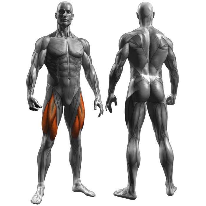 Это упражнение тренирует все составляющие четырёхглавой мышцы бедра (квадрицепс):