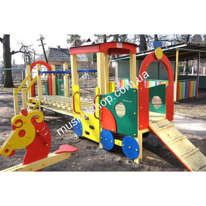 В большой паровозик с вагоном Интер Атлетика TE503 можно поместить всех друзей вашего непоседы и отправиться в увлекательное путешествие. Оснащен паровозик поручнями во время поездок и поднятия, а также горкой для крутого и молниеносного спуска. Игровой комплекс представлен в разноцветных тонах, выполнен с прочного, качественного и натурального дерева, с добавлением стали и фанеры. Для лучшей фиксации комплекса, необходимо забетонировать основание. Материалы качественные и после нескольких годов интенсивной эксплуатации, такая детская горка не поменяет свой первоначальный облик. Общая масса изделия составляет 225 кг, способно выдержать общую массу в 80 кг, идеальный вариант для детишек от 2-х до 7 лет, устанавливается в помещениях, дачах и загородных комплексах, базах отдыха, детских лагерях, возле водоемов.
