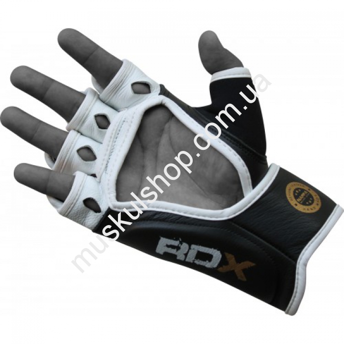 Перчатки RDX рассчитаны на боевое самбо, а также оттачивания техники нанесения удара и работы на различных снарядах. Перчатки хорошо защищают руки, обеспечивая комфортное расположение рук, убирая полностью риск получения различных травм. Набивка выполнена из интегрированного геля, роль подкладки выполняет материал, который выводит лишнюю влагу наружу, а также контроля процессом терморегуляции. Фиксируются при помощи липучек. Изделие полностью нивелирует появление мозолей в момент нанесения ударов. Можно заказать различные размеры, под заказ, выполнены в черном цвете. Пошито изделие ручным способом английскими мастерами из качественной, прочной, эластичной и весьма надежной кожи типа Nappa, все изделия относятся к элитным и признаны мировым сообществом единоборств.