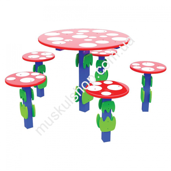 Стол со стульями Inter Atletika идеально подходят под любой тип песочницы, их можно установить во дворе загородного домика, садика, базы отдыха и обычных дворов. Размеры столика составляют 1,1 на 1,1 м, высота почти 1 м, подходят для детских игр, складывания пазлов, основание должно быть забетонировано для лучшей фиксации либо закреплено болтами. Под свое размещение такому комплекту понадобится минимум площади, но за это дети отблагодарят вас теплыми улыбками, смехом и хорошим настроением. Общий вес грибка столика со стульями 32 кг, используется для игр детишками от 2-х до 12-ти лет, выполнена модель с прочной, качественной и надежного дерева в разноцветных тонах.