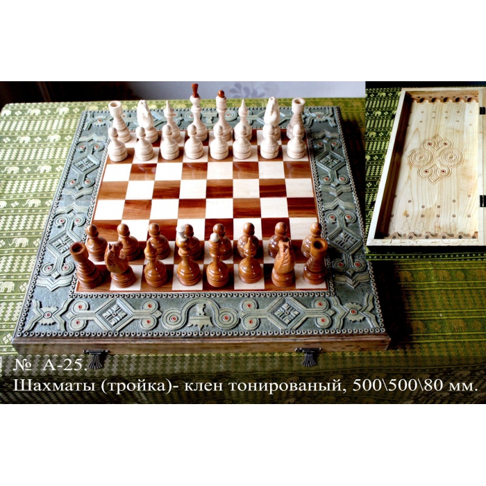 Шахматы Мастер А-05, 25, 28 дерево изготовлены резьбовым методом, исключительно руками, не содержат вредных веществ, красок и прочих химикатов. Модель классического стиля, станет хорошим подарком на дни рождения, юбилеи, игры в семейном кругу либо на природе. Размеры игрового полотна в форме квадрата, составляют 50 на 50 см, высота 8 см. Шахматы приучают людей к логическому мышлению, вырабатывают усидчивость, силу воли, позволяют просчитать несколько ходов наперед и одержать долгожданную победу. Такие шахматы изготавливаются из прочной, качественной и влагостойкой ольхи и клена, на выбор несколько цветовых гам и вариантов полотен. Шахматы хорошо ложатся в руку, не выскальзывают, плотно прижимаются к доске, в меру тяжелые.