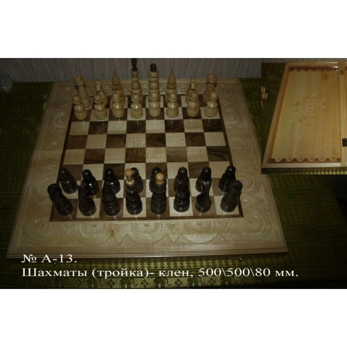 Шахматы Мастер А-08, 13 дерево классического стиля, выполнены с клена и ольхи, породы прочные, влагостойкие и долговечные, в наличии несколько цветовых гам и вариантов полотен. Настольные шахматы станут хорошим подарком на дни рождения, юбилеи, игры в семейном кругу либо на природе. Размеры игрового полотна в форме квадрата, составляют 50 на 50 см, высота 8 см. Шахматы приучают людей к логическому мышлению, вырабатывают усидчивость, силу воли, позволяют просчитать несколько ходов наперед и одержать долгожданную победу. Модели изготовлены резьбовым методом, исключительно руками, не содержат вредных веществ, красок и прочих химикатов, вредных человеческому организму. Шахматы хорошо ложатся в руку, не выскальзывают, плотно прижимаются к доске, в меру тяжелые.