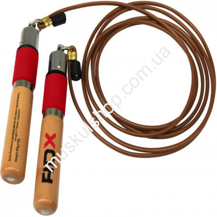 Скакалка RDX имеет высокую скорость вращения, это обеспечивается шариковыми подшипниками в ручках данной модели. Модель способна вращаться со скоростью свыше 5 оборотов в секунду, представлена в красном и черном цвете, выполнена из силикона, оснащена деревянными рукоятками. Изделие пользуется большей репутацией среди спортсменов и комплектуется всем необходимы сертификатами международного качества. Общая длина составляет 280 см. Занятий с таким инвентарем развивают у боксеров и других бойцов координацию движений, тренируют сердце, общий уровень выносливости организма, а также укрепляют мышцы групп ног и рук, грудной клетки и пресса. С целью тренировки кистей рук, внутри ручек предусмотрены специальные утяжелители.