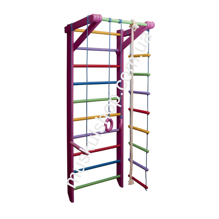 Спортуголок Sportbaby Барби 2-220 поражает своим дизайном, многофункциональностью, благодаря чему покорил он многих покупателей, особенно маленьких принцесс. Уголок цветных оттенков, выполнен из прочной сосны и бука, обработан уголок универсальным антисептиком, не вызывающий аллергических реакций. Укомплектован уголок следующим: стенкой с турником, прочным канатом, спортивными кольцами, трапецией для занятий, лестницей для пиратов из веревок, крепежным комплектом, а для полного спокойствия рекомендуем приобрести мат. Комплекс способен выдерживать и взрослого до 130 кг, а при этом вес спортуголка составляет 20 кг. Уголок развивает мышцы малышки, укрепляет их, придает тонуса ее организму.