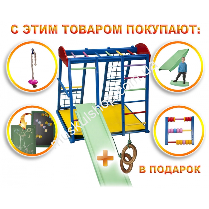 Детский домашний спорткомплекс Sportbaby Юнга Мини порадует абсолютно любого малыша своими красками и функциональностью. Комплекс рассчитан на детишек раннего возраста. Он комплектуется рукоходом, шведской и гладиаторской стенкой, 1,5 детской горкой для спуска, матом для упражнений и спортивными кольцами. Он заменит привычный детский уголок, внесет новые эмоции в жизнь малыша, наполнит силами его детский организм, а также поднимет иммунитет. Все детали выполнены из прочного сосны, а рукоход изготовлен из бука, данное изделие пропитано специальным антисептиком. Комплекс выдерживает нагрузку свыше 40 кг, при этом масса самого изделия не превышает 25 кг, отлично подойдет детишкам от пяти месяцев до шести лет.