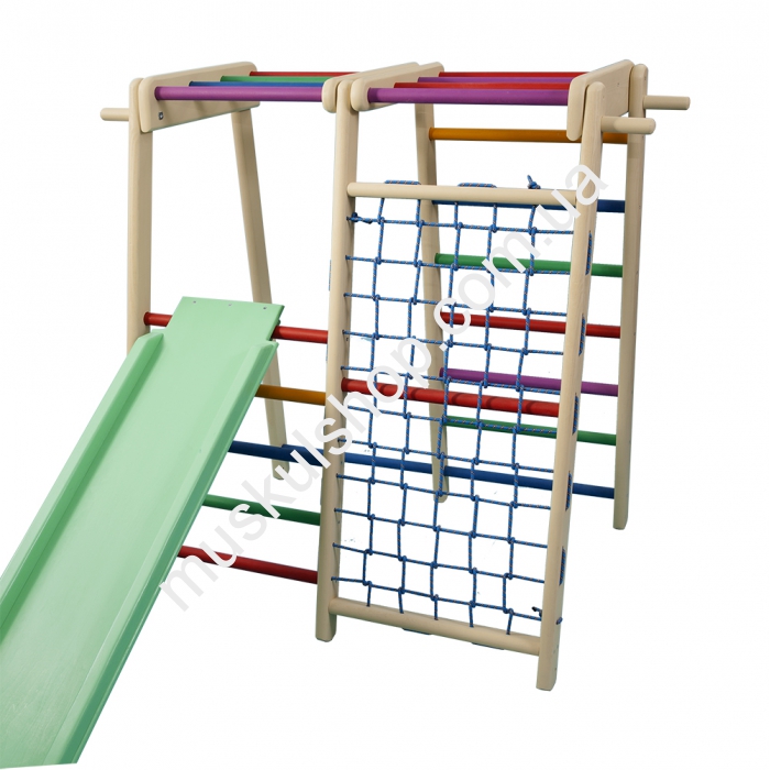 Детский спорткомплекс Sportbaby Спартак для домашнего и уличного пользования хорошо развивает детские мышцы рык и ног, тренирует их выносливость, вырабатывает иммунитет. Кроме этого он прочный, надежный, способен выдерживать, находясь на улице различные природные катаклизмы. Данный комплекс состоит из гладиаторской сетки, детской горки для спуска, шведской стенки и рукохода. Устанавливать такой комплекс можно в любом месте, как в домашних условиях, так и на улице. Конструкция выполнена из сосны и бука, представлен в ярком цветном цвете. Комплекс выдерживает нагрузку до 80 кг, при этом масса самого изделия не превышает 35 кг. Позвольте детворе весело провести время!