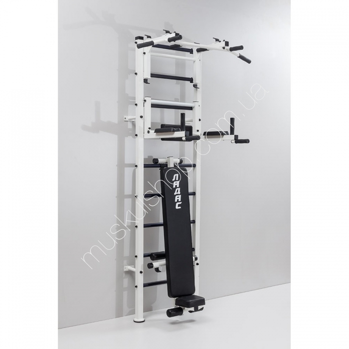 Стойка Ладас модель Атлант изготавливается в черном и белом цветах, с прочного, качественного и надежного металлического сплава. Турник съемного типа, подойдет в качестве подставки под штангу. Хорошо подходят для пресса брусья стойки. Скамья для пресса укомплектована четырьмя валиками. Стойки выполнены с прочной трубы, готовы выдерживать до 150 кг веса, подойдет для большой семьи. Стойка поможет научиться делать разные упражнения, подкачать все группы мышц и поднять свой иммунитет. Модель поднимет общий тонус организма, подкачать важные группы мышцы рук, шейного отдела, поясницы и пресса. Модель крепится распорками и к стенке одновременно, чтобы обеспечить прочную фиксацию.