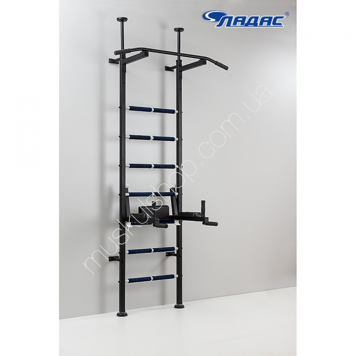 Стойка Ладас модель Energy-Lux способна выдерживать до 120 кг нагрузку, рассчитана исключительно на взрослых или на большую семью. Стойка оказывает положительное физическое влияние, поможет всегда быть в форме, поднять общий тонус организма, подкачать важные группы мышцы рук, шейного отдела, поясницы и пресса. Стойка помогает начинающему спортсмену выполнить разные физические упражнения, укрепить все мышцы торса спортсмена. Укомплектована модель стенкой с перекладинами, которые обвиты в пластмассовые трубки, широким, прочным и надежным турником, лавочкой для качания пресса, уникальными брусьями под штангу. Модель выполнена с прочного металла, высшего класса, представлена в черном цвете, крепится распорками и к стенке одновременно.