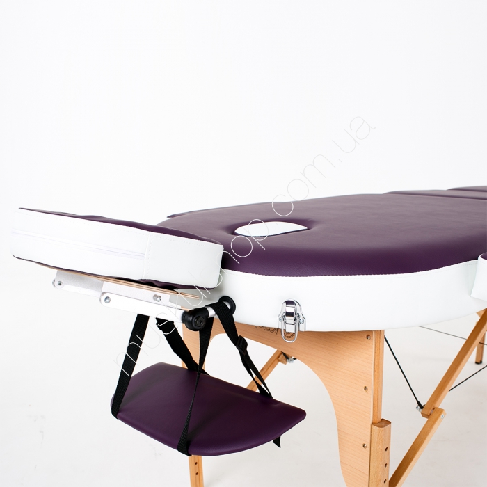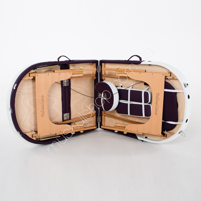 Комплектация: массажный стол, алюминиевый регулируемый подголовник с подушкой под лицо, подвесная полочка под руки, боковые подлокотники, стандартная сумка для переноски.