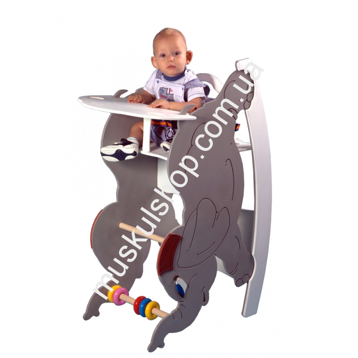 Стульчик для кормления с качалкой и столиком СпортБэйби Слоник обладает ещё одной особенностью – из представленного столика можно сделать парту с красочными колечками, что невероятно полезно для малыша, что растёт и развивается. Если же слоника перевернуть на другую сторону, то он превращается в маленькую качалку, которая наверняка понравится вашему чаду. Ну а если его поставить вертикально – то он превратиться как раз в стульчик для кормления. Более того, столик оснащён специальным ремешком-фиксатором, который не даёт малышу самостоятельно сползти со стульчика, а потому он не сможет упасть.