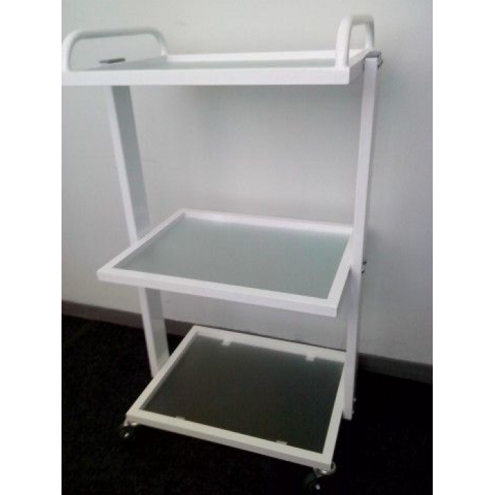 Косметологическая Asf тележка белого цвета, укомплектована прочными, стеклянными полочками размером 35х45 см, высота тележки 0,8 м. Тележка хорошо поддается чистке различными средствами, просто незаменимый девайс, для абсолютно любого массажиста либо косметолога. Размеры тележки позволяют разместить в кабинете любого размера. Наверху тележки размещены ручки для прочной фиксации в момент транспортировки. Модель на четырех, прорезиненных колесиках, в ее производстве были задействованы качественные, прочные и проверенные в быту материалы, такие как сталь и матовое стекло. Модель впишется в любой интерьер косметологического кабинета.