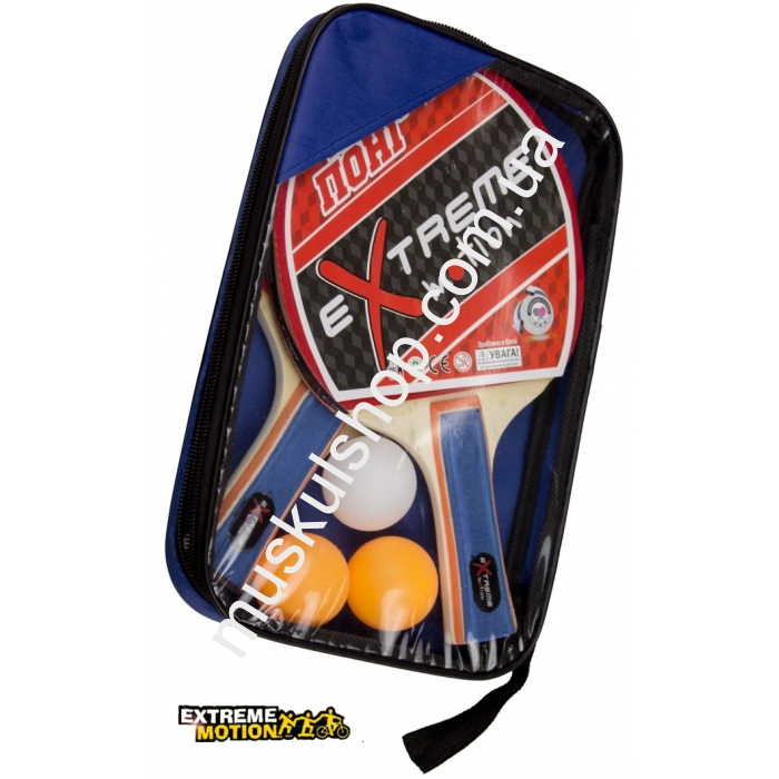 Ракетки eXtreme Motion предназначены для клубного спорта и для любительской игры. Основание ракеток изготовлены из 5-ти слойной специальной фанеры, покрытой 1,5 мм резиной. Отличный теннисный набор Екстрим Моушен для подарка или учебной игры. Комплект состоит из чехла,  двух теннисных ракеток и трех мячиков.