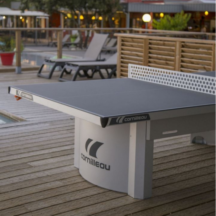 Украшение любой спортивной площадки - профессиональный всепогодный теннисный стол Cornilleau Pro 510m, который создан специально для постоянного использования и хранения на улице. Теннисный стол Pro 510M OUTDOOR Cornilleau  стойкий к абсолютно любым температурам и погодным условиям. Технические характеристики:
