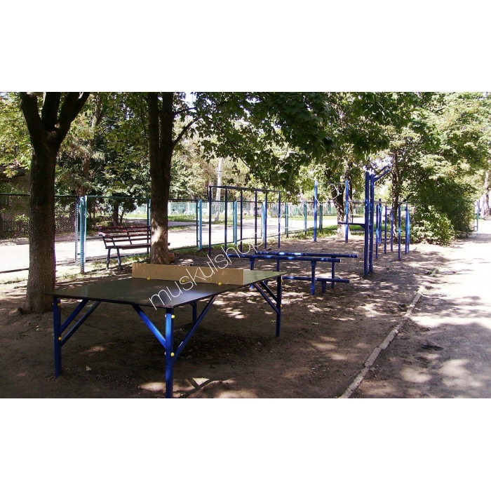 Теннисный стол для улиц Интер Атлетика S729 любительского назначения, представлен в синем цвете, подходит для любых видов детских тренировок, игр, проведения любительских матчей. Столешница изготовлена из ДСП, помогает теннисному шарику хорошо отскакивать. Модель произведена, согласно, всех стандартов теннисного качества и различных требований для детской игры. Стол укомплектован сеткой из фанеры, выполнен каркас из современного и прочного материала. Стол не занимает много места на улице, его можно установить стол его на абсолютно любую поверхность. Модель создана для игр на детских площадках, в лагерях, школах и дворах улиц, компактные размеры стола позволяют хранить его в любом месте.