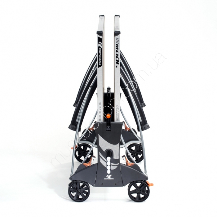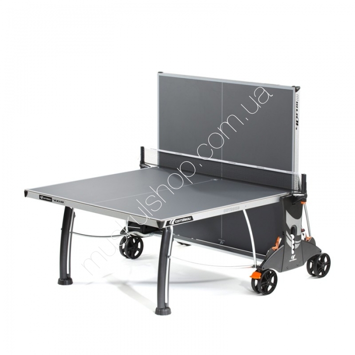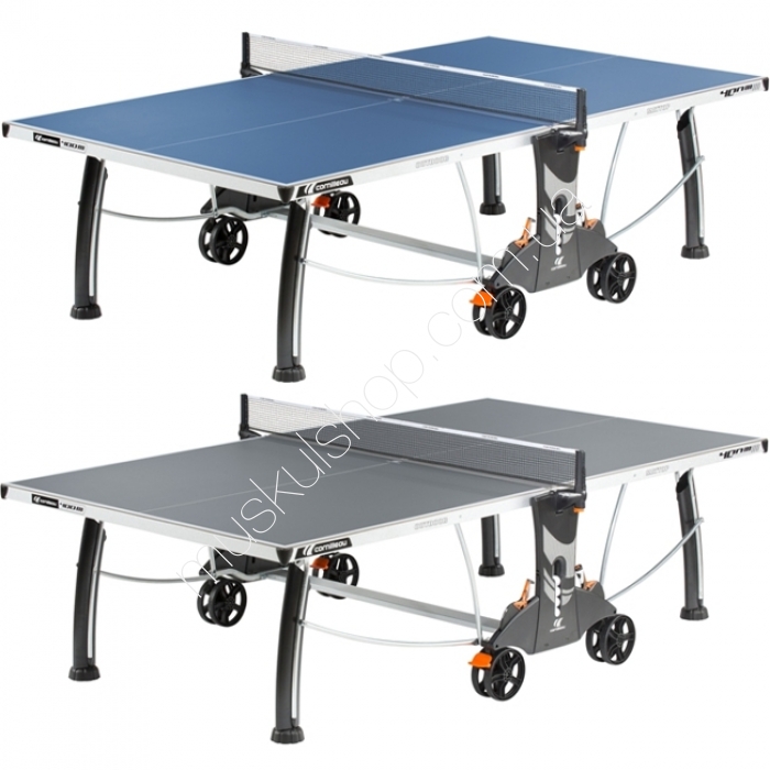 Cornilleau Sport 400 M Crossover Outdoor 134905/01 всепогодный тенистый стол, он произведен придерживаясь всех стандартов теннисного качества и различных требований. Поверхность плиты выполнена из 6 мм меламина, обладает окантовкой. Вес изделия более 65 кг, очень устойчивый и прочный, складывается, передвигается на колесиках. Модель выполнена ручным способом, столешница синеватого оттенка. Стол покрыт уникальный против бликовым покрытием, что весьма практично в момент интенсивных тренировок либо ответственных игр. Стол не занимает много пространства, обладает хорошим отскоком, а ножки позволяют установить стол его на абсолютно любую поверхность. Комплектуется также стол регулируемой сеткой.