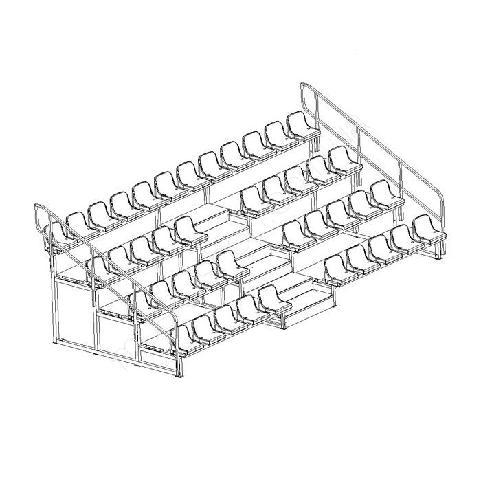Трибуна на 42 места без накрытия УТ705 разработана, согласно, всех конструкторских проектов. Модель выполнена с металлической трубы, разборного типа, укомплектована трибуна пластиковыми сидениями различного цвета, фиксируются болтами. Модель можно поднять от основания на 1,5 метра, для красочного и лучшего обзора спортивной игры. Устанавливается для просмотра футбольных, баскетбольных, волейбольных, теннисных и гандбольных матчей. Длина трибуны составляет 6,66 метра, а высота 1,94 метра, выполнена в сине-желтом цвете, можно для обеспечения лучшей фиксации прикрутить к основанию пола. Предусмотрен также трап для поднятия, вход выполняется по заказу с любой стороны. Кресла в комплект не входят.