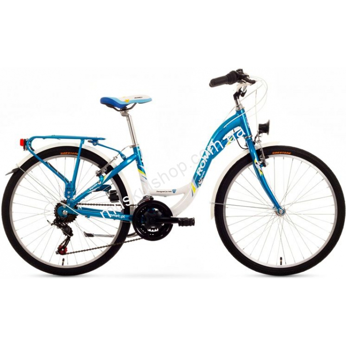 Велосипед ROMET PANDA 24 lux порадует прохожих своим внешним видом, модель подойдет всем детишкам без исключения, оснащена багажником и звонком. Рама 13 дюймовая, выполнена с алюминия 6061Т6. Укомплектован велосипед рулем из стали, педалями с износостойкой пластмассы, седлом, жестким типом вилки и другим комплектующими. Обода алюминиевые, вес велосипеда 13 кг, на нем установлена ободная система экстренного торможения, ручной тормоз V-Brake. На велосипеде Ромет Панда 24 Люкс предусмотрено три передачи, небольшая защита от цепи, комплектующие от европейских известных брендов. Колеса 24 дюймовые, модель способна преодолевать любые препятствия и бездорожье.