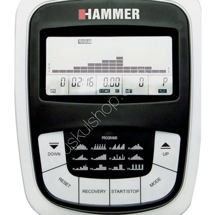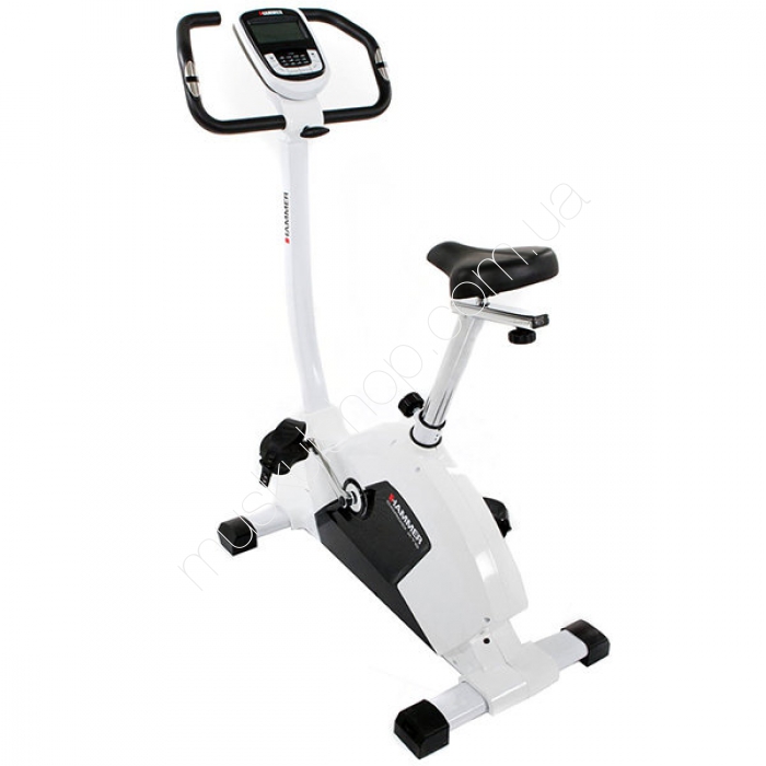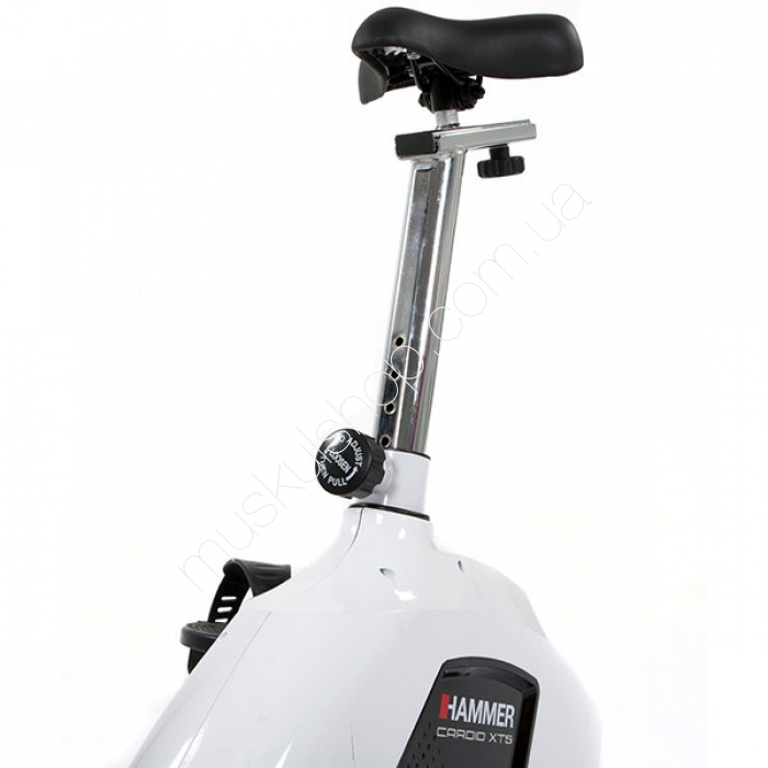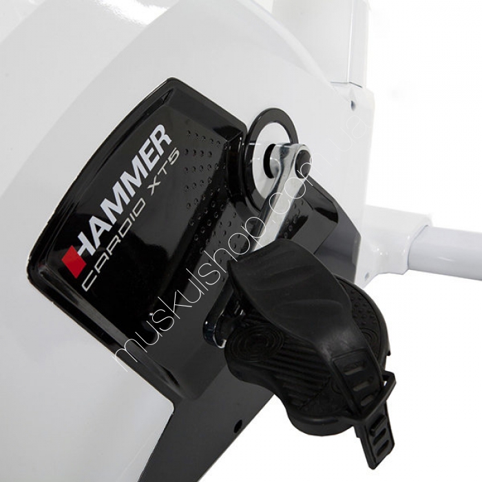 Hammer Велотренажер Hammer Cardio XT5 Велотренажер Hammer Cardio XT5 превосходно подойдёт для размещения в тренажёрных залах и даже в домашних условиях. Дизайн данного тренажёра идеально впишется в любой интерьер, став его идеальным дополнением. В рукояти представленного приспособления встроены маленькие датчики, которые позволяют измерять пульс пользователя непосредственно при тренировках. Его усиленная конструкция позволяет выдерживать даже повышенную нагрузку и особо интенсивные тренировки.