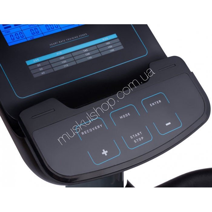 Дополнительно: фиксирующие ремешки на педалях, компенсаторы неровности пола, транспортировочные ролики, регулировка сидения, recovery test, body fat + scan.