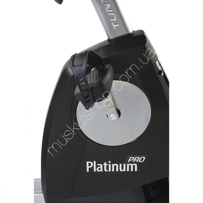Tunturi Велотренажер Tunturi Platinum Recumbent Bike PRO Велотренажер Tunturi Platinum Recumbent Bike PRO работает достаточно тихо и плавно, не создавая лишнего шума, или же вибраций, и всё это благодаря специальному маховику. Помимо всех своих плюсов аппарат также оснащён стабилизирующими подпятниками, которые одновременно выступают и в качестве стабилизаторов неровностей пола. Удобные педали не позволяют ногам пользователя соскальзывать во время тренировок, и всё это благодаря ремешкам-фиксаторам и нескользящей поверхности. Руль данного тренажёра отличается удобным наклоном, за счёт чего руки пользователя всегда будут находиться в удобном и анатомически правильном положении.